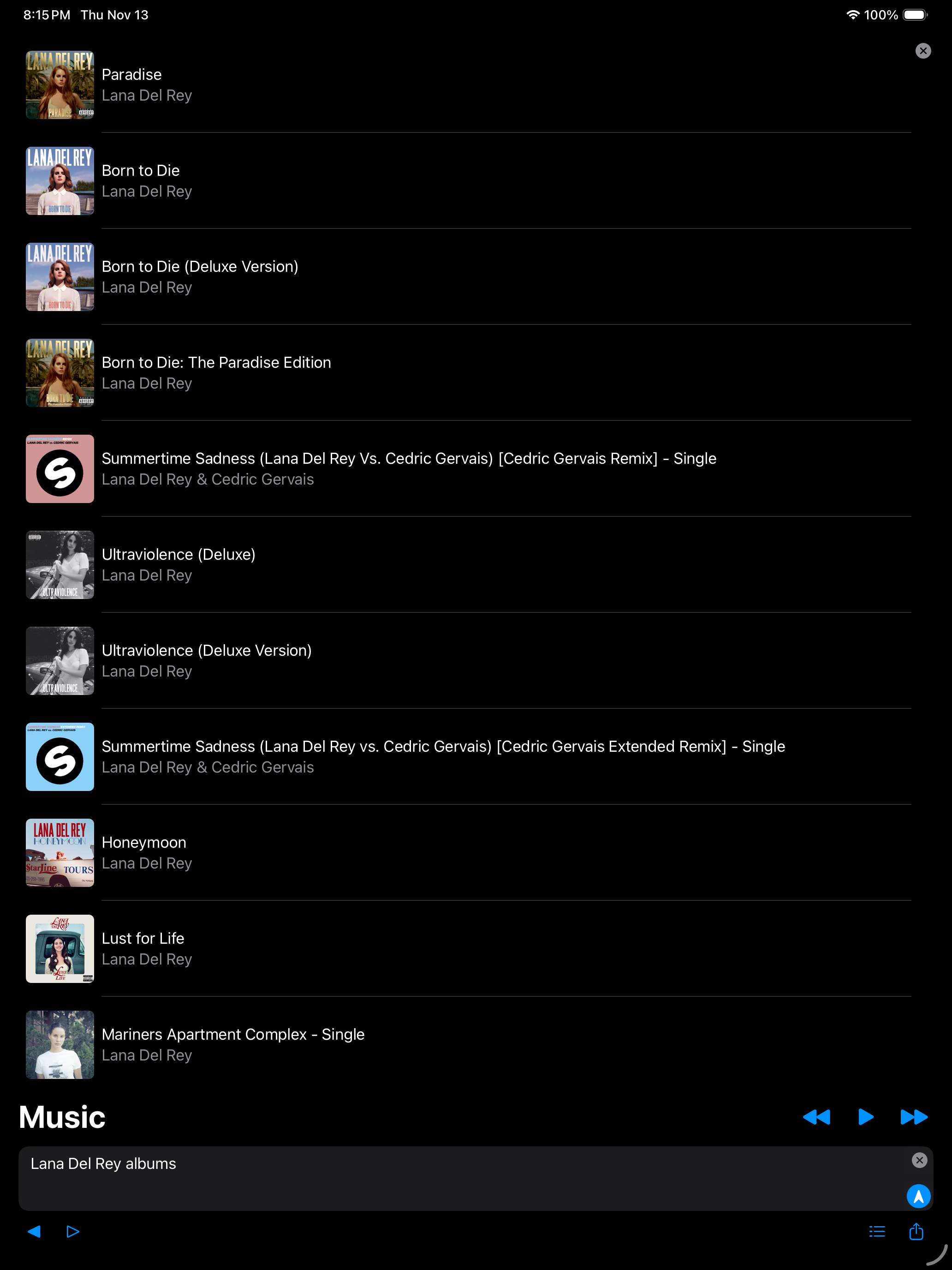 You can also enter music AI prompt commands like "Taylor Swift albums" and the AI-Jukebox will automatically generate the listing of artist albums.