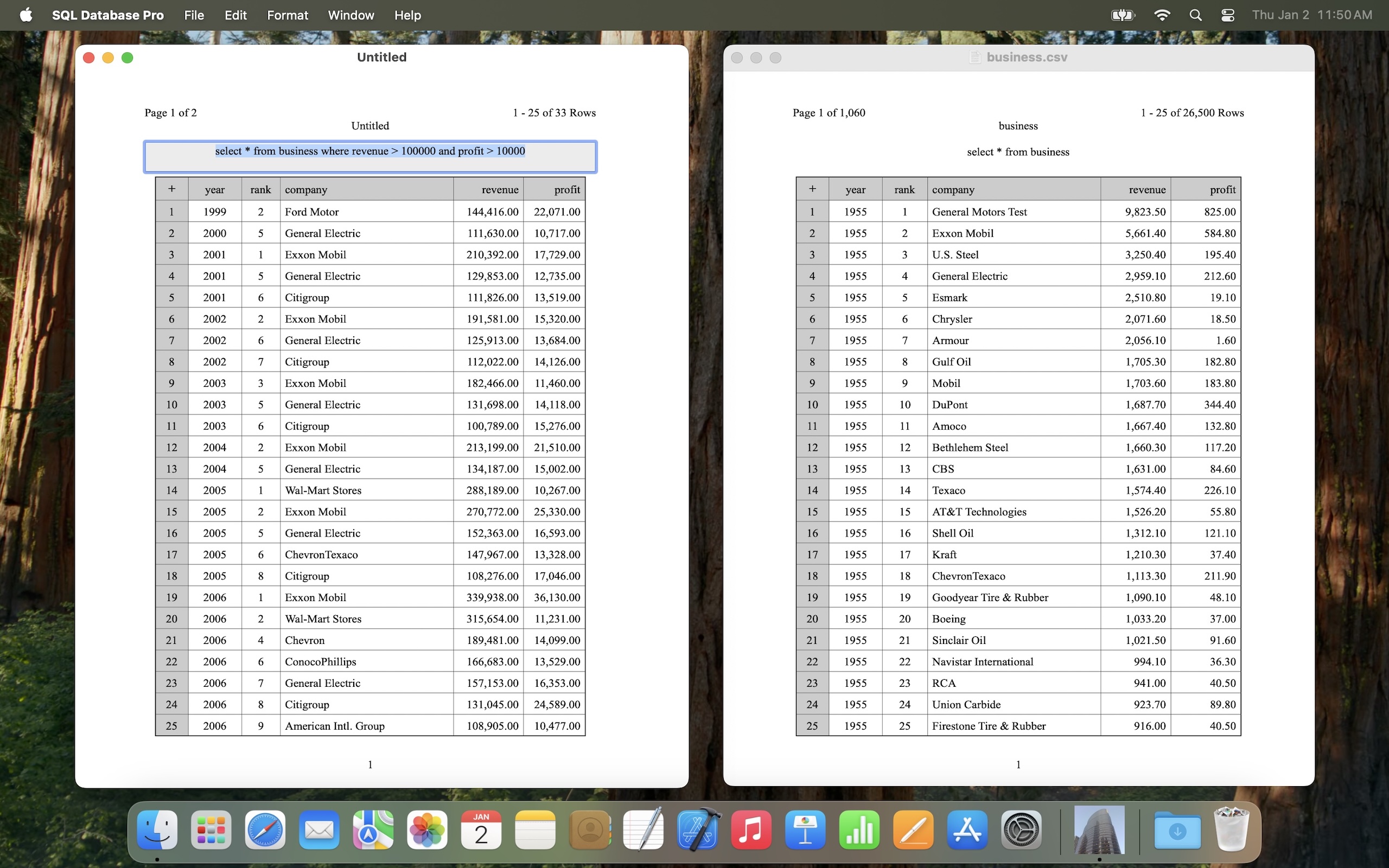 The SQLite query results are also automatically formatted for you to perfectly fit each column for thousands of rows in a few seconds.