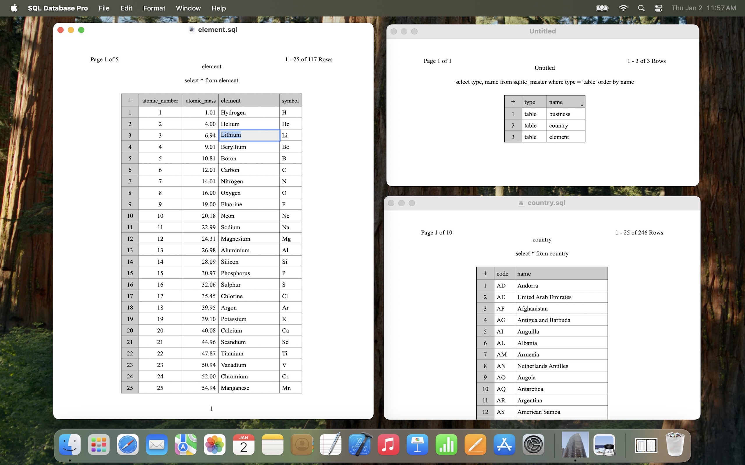 - Opens all SQLite database files