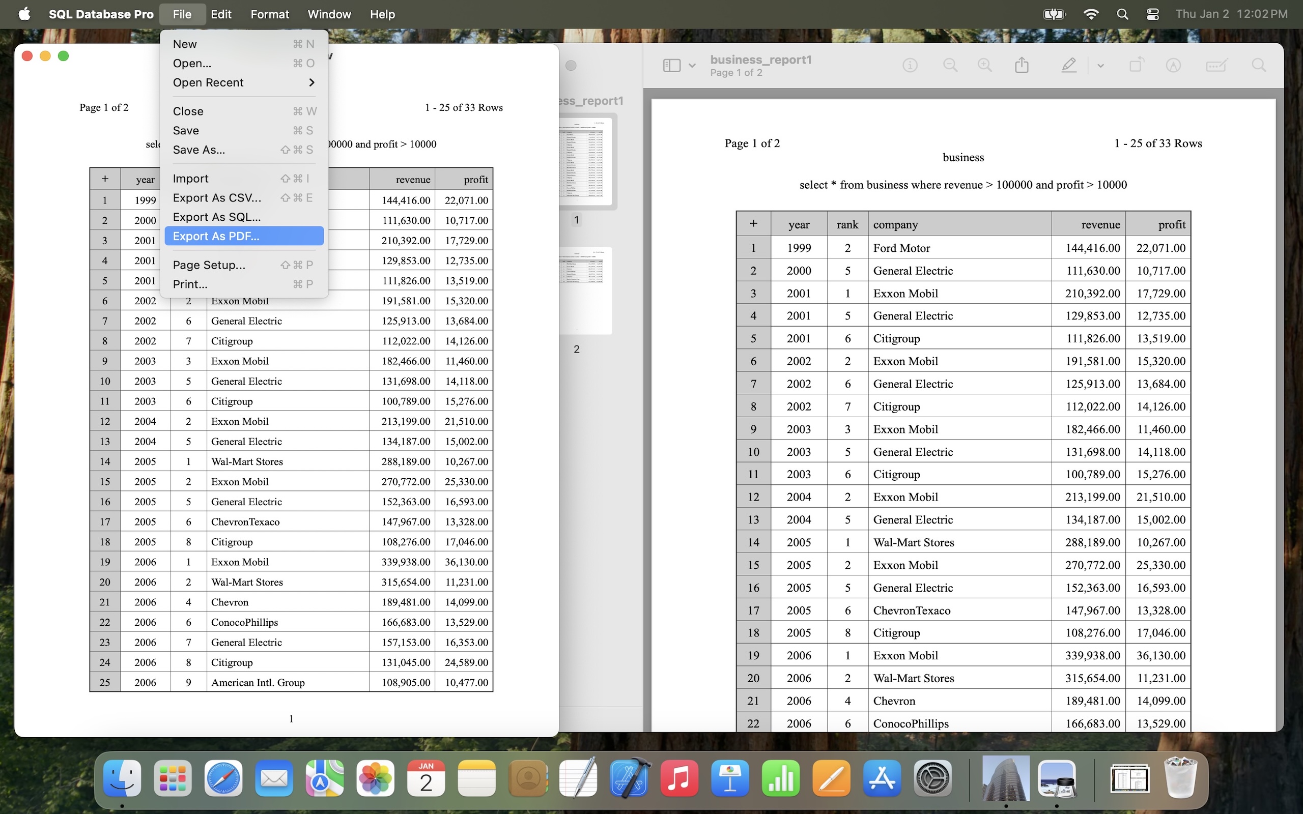 - Print, preview, and save SQL query reports as PDF documents